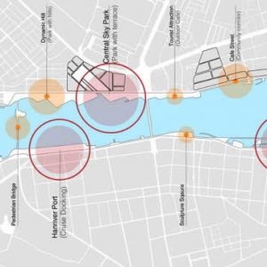 We decided to make the flat water edge (boundary of the river) more dynamic which will make the water front more water friendly. The dynamic waterfront will make various spaces for various activities. The Nodes and open spaces are in a line form. So by continually adding green spaces in the city image the line form has to be changed in to a face form. And Han river only has 5% of green space. We will increase the ratio of eco-friendly spaces up to 10% and respond to global climate changes and make a pleasant waterfront. Dragon Bridge and Danang city hall can be assumed as the landmark of the area. We pointed out a few focal points that can be landmarks that form city axis. And the landmarks won’t be only high but some will be unique spaces that will make special experience.
