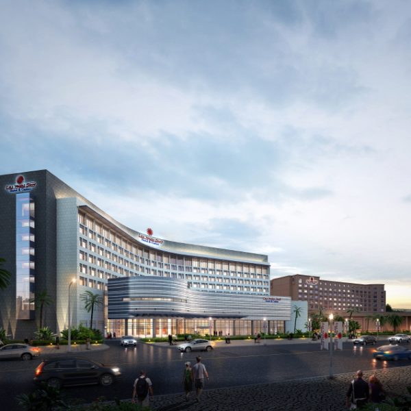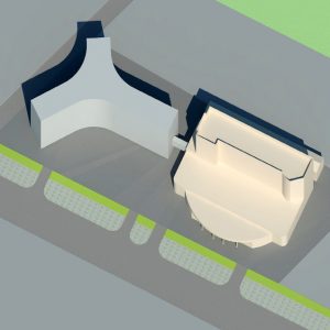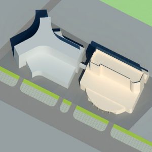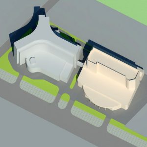 The new building on the left side of the existing hotel is planned to be a new layout that is in harmony with the existing hotel and adapted to the surrounding land situation.