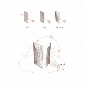 Lattice Brise Soleil is against Western and Northern solar radiation, that the 2-D Brise Soleil folds into the 3-D converges to the northwest corner.