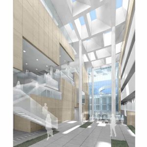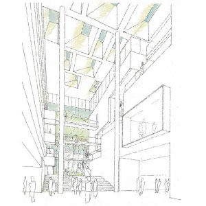 The canopy has the monumentality that unifies whole of campus harmoniously and the activity as a changeable background of which projects a screen at the bottom every minute and the environment-friendly that an environmental control system is considered natural ventilation and energy saving.