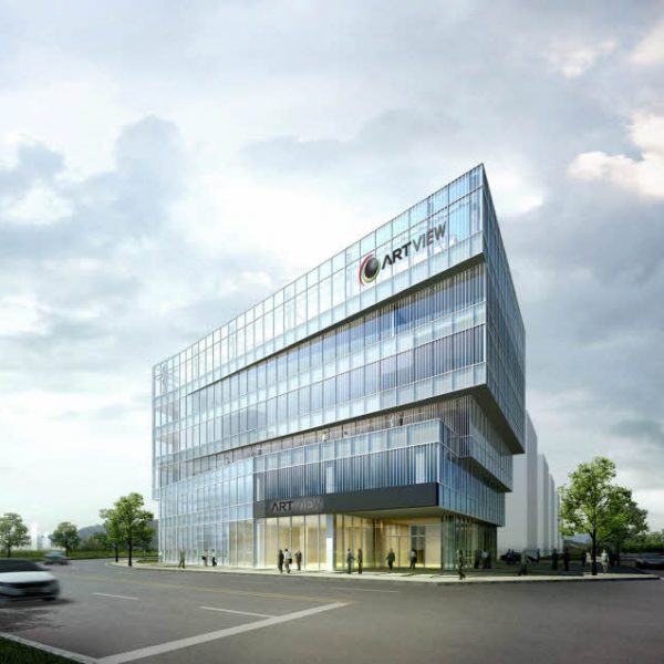 이형의 모퉁이 대지에 위치한 아트뷰 평촌 사옥은 정형적인 인접 대지와는 다른 형태로 고려되어야 합니다. 건물의 저층부는 북쪽으로 BOX를 내밀어 북측도로를 향해 정면성을 두었으며, 제조장과 사무실이 들어서는 상층부는 경제적이며 증축이 유리한 BOX형태를 유지하면서도 서쪽의 건축한계선에 가깝게 튀어나와 서측도로에서의 정면성을 부여합니다