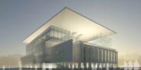 According to the use of the space, five space volumes depend on the direction with different materials. Tower and the lobby are becoming a glass box, east lecture hall with brick box, and the multi-purpose hall with metal box and then they are integrated with natural light in the courtyard.