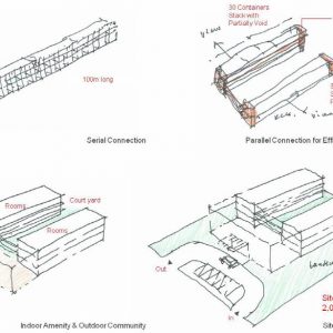 As a living space, Simple stacked containers have to be considered in terms of privacy and comfort. When applying stacking method, various space action can be taken by controlling units. Enough open spaces can be secured by voids.