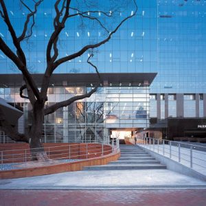 배재 정동 빌딩은 도시 경관상 태평로 반대쪽 남대문 방향의 고층 오피스 빌딩군과 정동의 저층 건물군의 중간 지점에 위치한다. 태평로 쪽에서 정동으로 들어서는 입구라는 점에서 그 장소적 의미는 커진다. 현재 배재 정동 빌딩은 대지면적의 상당부분 많은 면적을 외부 공간으로 조성하고 있으며, 문화재로 지정되어 있는 동관 건물, 회화나무와 향나무를 배치계획에서부터 도입하고 있다. 배재정동빌딩 앞의 오래된 회화나무는 정동으로 진입을 알리는 마을의 당나무와도 같은 존재가 되고 있다. 이 고목은 배재 정동 빌딩의 외부공간에서 중심이 되고, 건물내부로의 진입과 흐름을 자연스럽게 형성하는 사인물이 되고 있다.