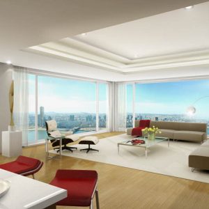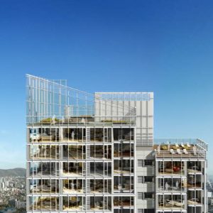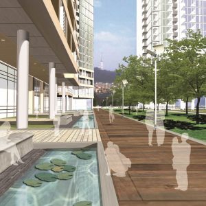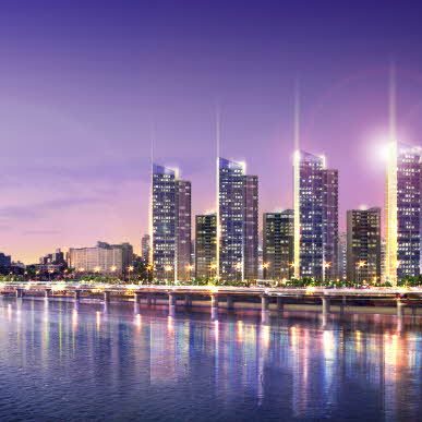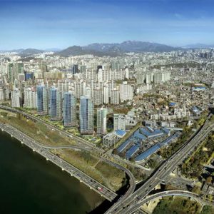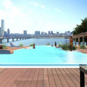 한강과 남산의 조망을 흡수하라는 것이 프로젝트의 가장 큰 목표였다. 554세대의 정해진 인원들이 예전과 비슷한 크기의 새 집에서 살게 하는 것 이다. 다만 예전보다 더 진보된 주거시설이어야 하고, 더 가치 있는 디자인이어야 했으며, 그 점을 만족시켜줄 수 있는 가장 큰 이슈는 한강 조망이었다. 한강을 따라 두 줄로 배치된 현재의 산호아파트 모습을 지그재그의 한 줄 배치로 바꾼 것이 배치에 있어 가장 중요 아이디어였고 출발점이었다. 남산과의 조망 축을 설정하여 매스를 분절시키고 법이 허용하는 한 최대한 매스간격을 벌렸다. 한강과 가장 가까운 전면부는 32층으로 타워형에 가까운 평면형태를 지니다가 주면 날개부의 평면형식은 판상형에 가깝다. 입면상에서는 타워형 아파트로 보이지만 실제로 판상형 아파트가 숨어있는 꼴이다. 다양한 주거형태가 한강이 가진 리듬에 따라 변주되어 녹아들어 있는 계획안이다.